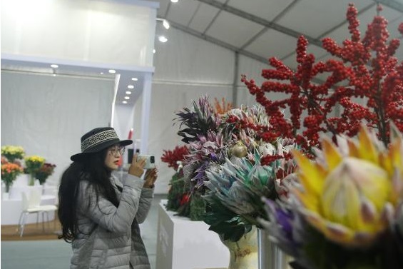 图为11月26日,民众参观中国昆明斗南花卉展览会。黄兴鸿摄